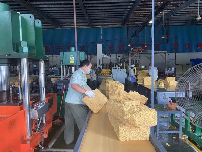 金隆橡膠加工分公司包裝車(chē)間正抓緊全乳膠的產(chǎn)品包裝生產(chǎn)。