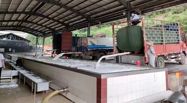 膠農(nóng)在海南橡膠收膠站點賣膠水。
