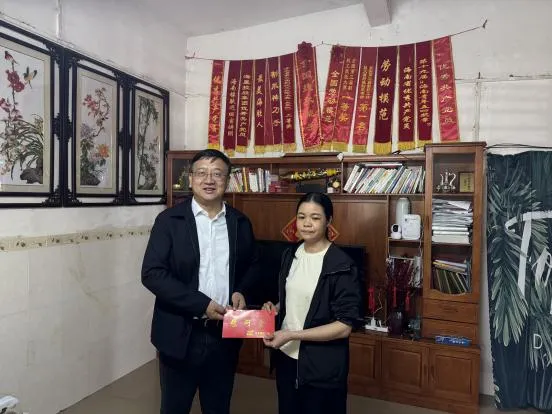 海南橡膠黨委副書(shū)記、總經(jīng)理?xiàng)钣钜恍懈凹逾O分公司,走訪慰問(wèn)了全國(guó)勞模、海南橡膠赴非專家虞海濃的家屬。