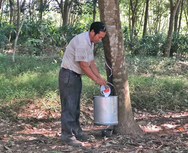 2005年,年僅19歲的溫業(yè)國接過母親承包的兩千多株割膠崗位,拿起膠刀,開始了他的割膠生涯,到如今,已與橡膠打了18年的交道。