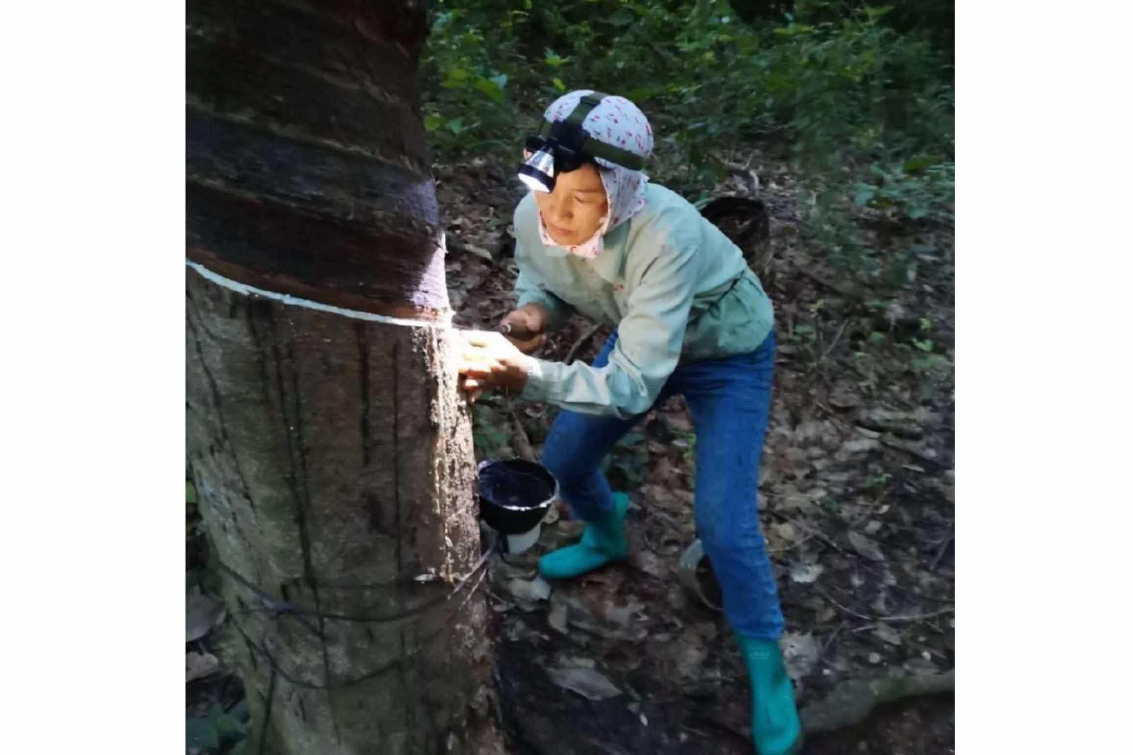 12月4日凌晨1時,夜色深沉,海南橡膠龍江分公司金波二十隊卻是一片忙碌景象。割膠的鐘聲敲響后,膠工們紛紛戴上膠燈,拿起膠刀、膠桶,騎上摩托車,朝著自己的樹位前行。金波二十隊是龍江分公司最偏遠的生產(chǎn)隊,地處海拔1000多米的霸王嶺腳下,平均坡度70度。面對這樣艱難的生產(chǎn)工作環(huán)境,龍江分公司“鐵姑娘”